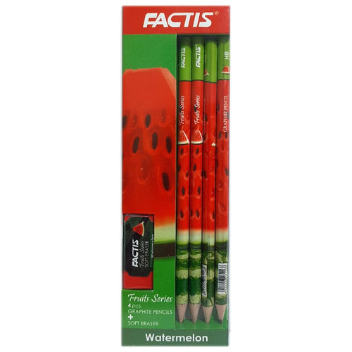 ست مداد مشکی طرحدار میوه ای + پاکن فکتیس