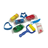 ۵ رنگ مختلف خمیر بازی ۱ عدد سفره ۱ عدد چاقو ۲ عدد شابلون ۱ عدد وردنه