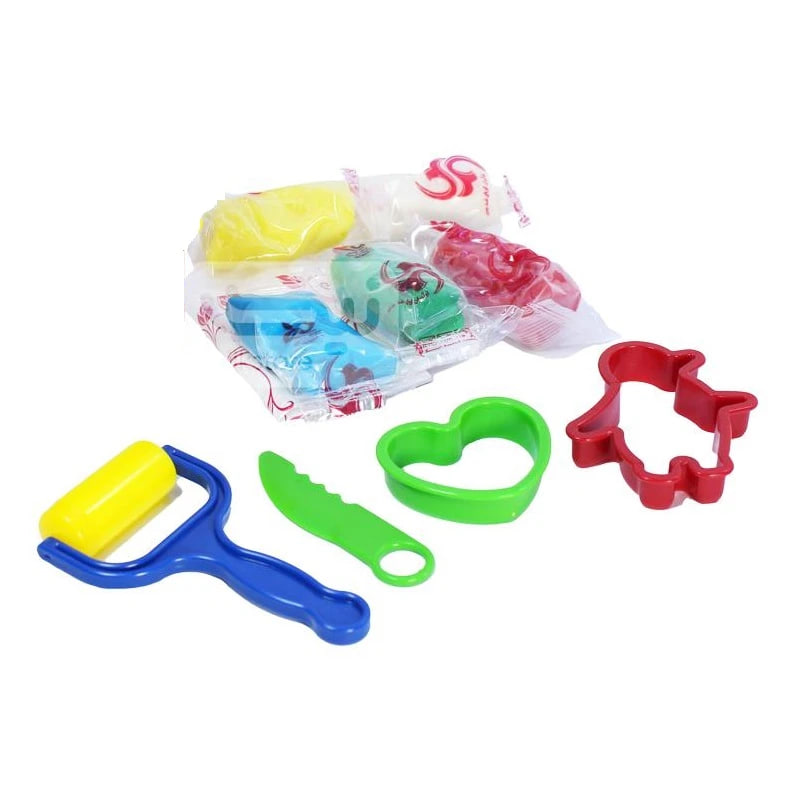 ۵ رنگ مختلف خمیر بازی ۱ عدد سفره ۱ عدد چاقو ۲ عدد شابلون ۱ عدد وردنه