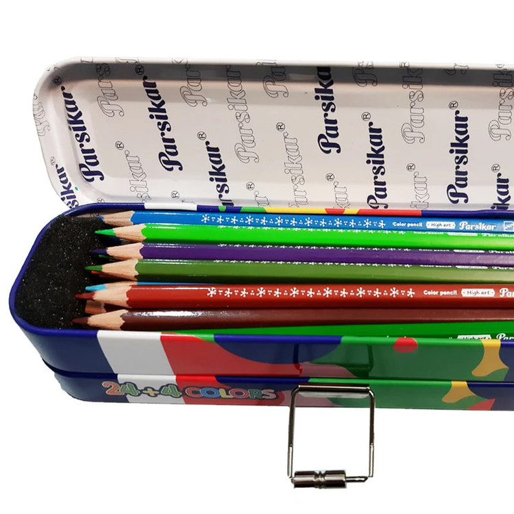 مداد رنگی 24 رنگ جعبه فلزی + 4 هدیه از برند پارسی کار