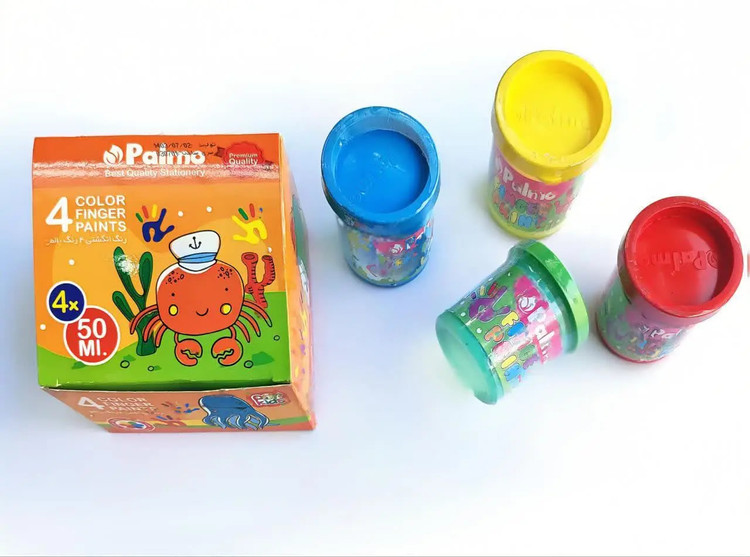 دارای چهار قوطی پلاستیکی رنگ به رنگ های آبی, سبز, قرمز , زرد