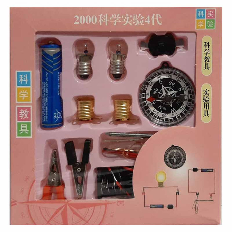 - اقلام بسته:2 عدد لامپ، 2 عدد سرپیچ، 1 باتری، 2 عدد گیره سوسماری، 1 عدد کلید قطع وصل، 1 عدد قطب نما، مقداری سیم و میخ و گیره کاغذ