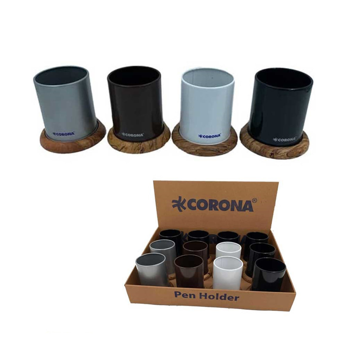 جاقلمی رومیزی فلزی پایه چوبی کرونا