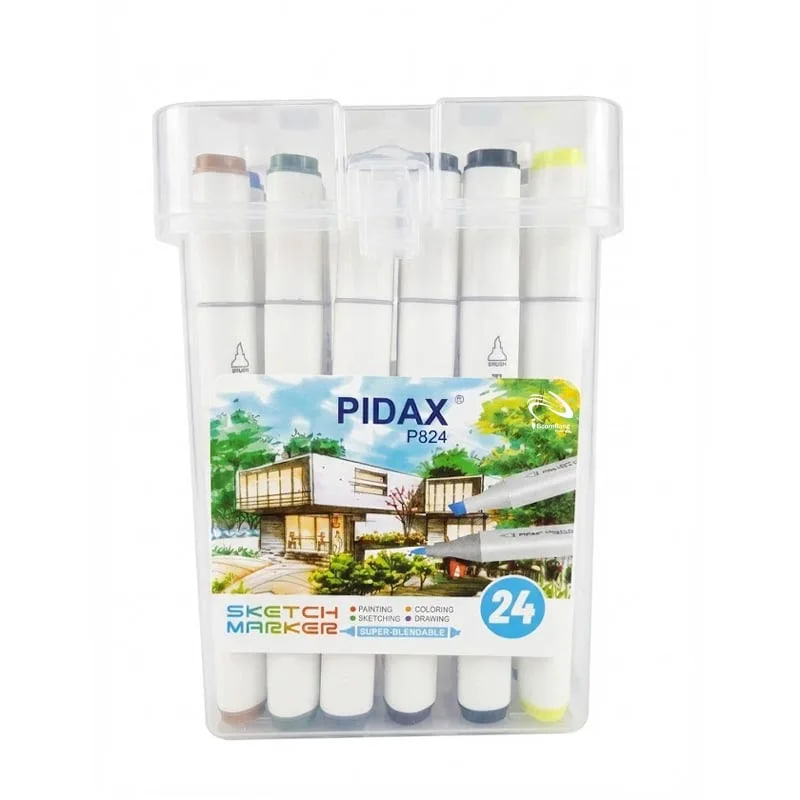 ماژیک راندو دوسر پیداکس ۲۴ رنگ؛ دارای سر تخت و سر براش برای طراحی حرفهای، رنگآمیزی و اسکچ. جوهر غلیظ، خشکسریع و مناسب هنرجویان و طراحان.