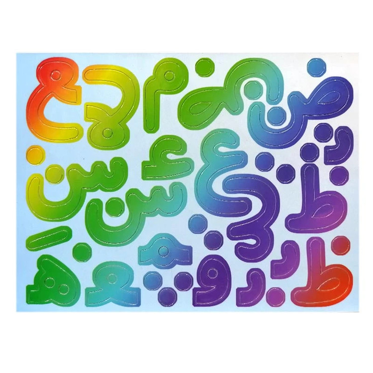 اقلام داخل بسته: ۸۸ قطعه آهنربایی حروف ابتدا، انتها و حروف وسط و سه سری اعداد و علائم فارسی