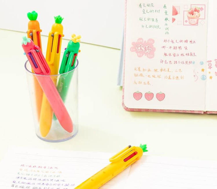 خودکار فشاری شش رنگ هفت دهم فانتزی طرح توت فرنگی و آناناس