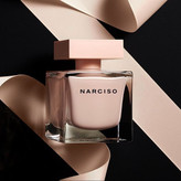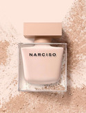 عطر ادکلن نارسیس رودریگز نارسیس پودری-Narciso Rodriguez Narciso، با رایحه ای خارق العاده و اکسیری جادویی کاملا جذاب و دوست داشتنی بوده و با شیرینی دلپذیر خود مناسب برای شب های خنک بهاری می باشد. خالق این محصول در باره ی آن می گوید : من می خواستم محصولی به شدت اغوا کننده با رایحه ای هوس انگیز طراحی کنم که سر هر مردی را به سمت خود بچرخاند و بانویی که از آن استفاده می کند را فریبنده و دلربا جلوه دهد. ترکیب آن با شیرینی لطیف و روح انگیز گل رز و یاسمن سفید آغاز شده که به قلبی از مشک گرم می رسد . این مواد بر روی بیس تندی از آکوردهای خسخس و سدر سیاه و سفید استوار می باشند . بطری آن ساده ، مربع شکل، به رنگ سفید شیری با حروف نوشته شده ی مشکی است که توسط مدل معروفی به نام Raquel Zimmermann تبلیغ شد.