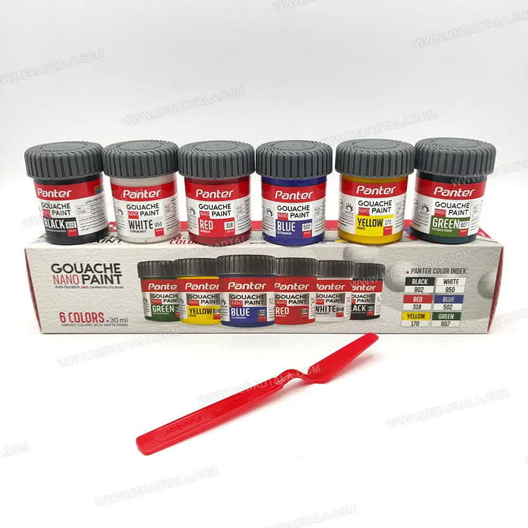 نانو پوشرنگ گواش پنتر با بکارگیری فناوری نانو و با افزایش مقاومت در برابر خراش و ساییدگی و با برخورداری از رنگهای زیبا و جذاب برای استفاده روی سطوح مختلف مانند انواع کاغذ و مقوا، بوم نقاشی، چوب، سفال، یونولیت و سایر سطوح مشابه مناسب است. این محصول هنری از گروه محصولات شگفت انگیز پنتر یا ;Minimum Awesome product تجربه ای خاص و منحصر به فرد را از نقاشی برای هنرمندان حرفه ای، هنرآموزان و هنرجویان گرانمایه شامل دانشجویان، دانش آموزان، کودکان و نوجوانان علاقه مند به خلق آثار هنری زیبا و جذاب پدید میآورد.